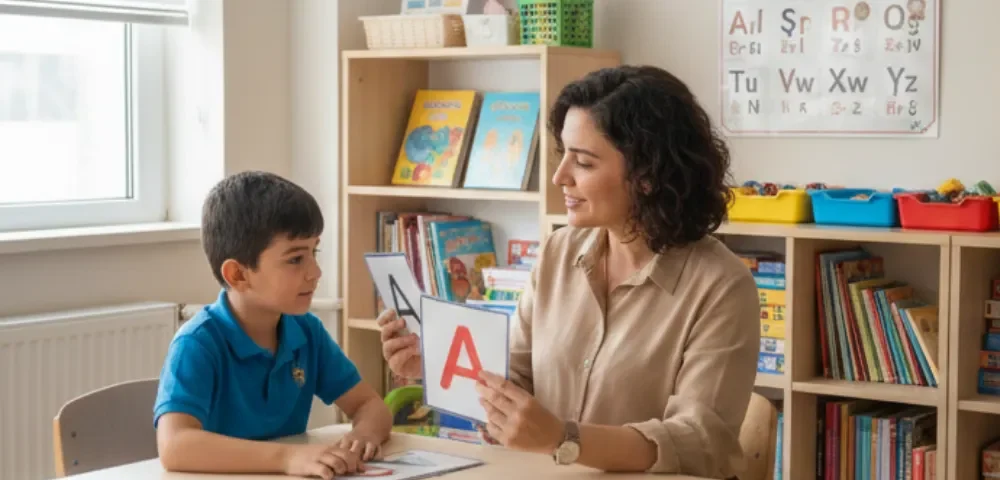 Uzman özel eğitim öğretmeni, çocuğun okuma, yazma, dil ve bilişsel becerilerini detaylı olarak değerlendirir.